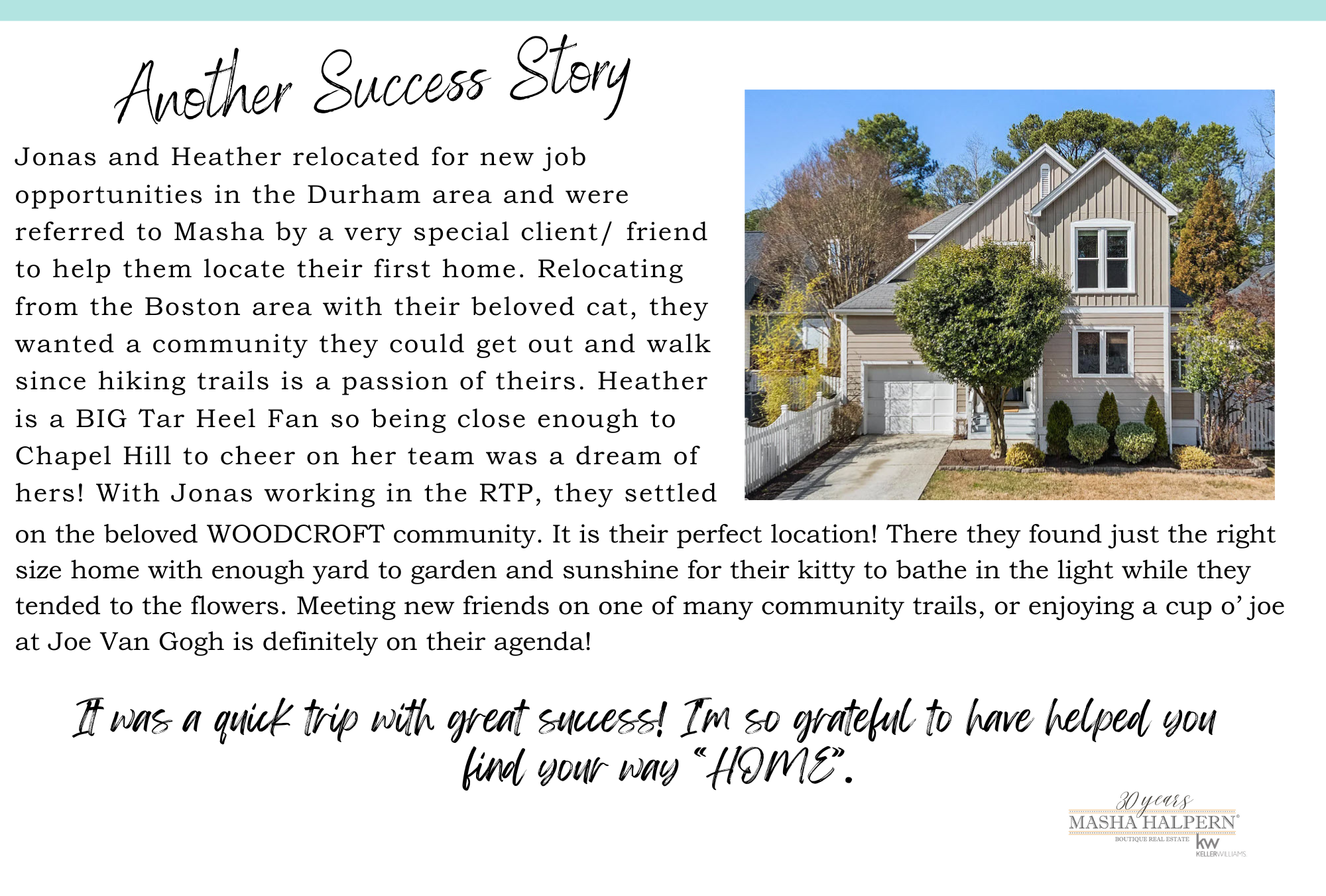 Chapel Hill Real Estate, Masha Halpern Top Relocation Realtor, Masha Halpern Realtor, Keller Williams Elite Realty, Durham Homes Sold, Durham Real Estate, Just Sold, Just Sold, Real Estate,Published March 24, 2025