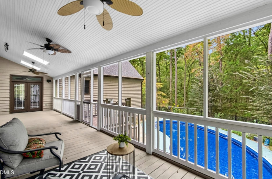 Then comes summer, and everything changes again. Your brand-new Topaz-blue inground pool becomes the heart of lazy weekends and epic gatherings. Picture floating away a Tuesday afternoon, teaching kids to swim, or hosting poolside dinners surrounded by daylilies and lush woodland views. The screened porch—accessible via French doors from both the family room and main-floor primary suite—offers the perfect retreat when you need a break from the sun. This isn't just a pool; it's a lifestyle upgrade that transforms your backyard into a private resort.