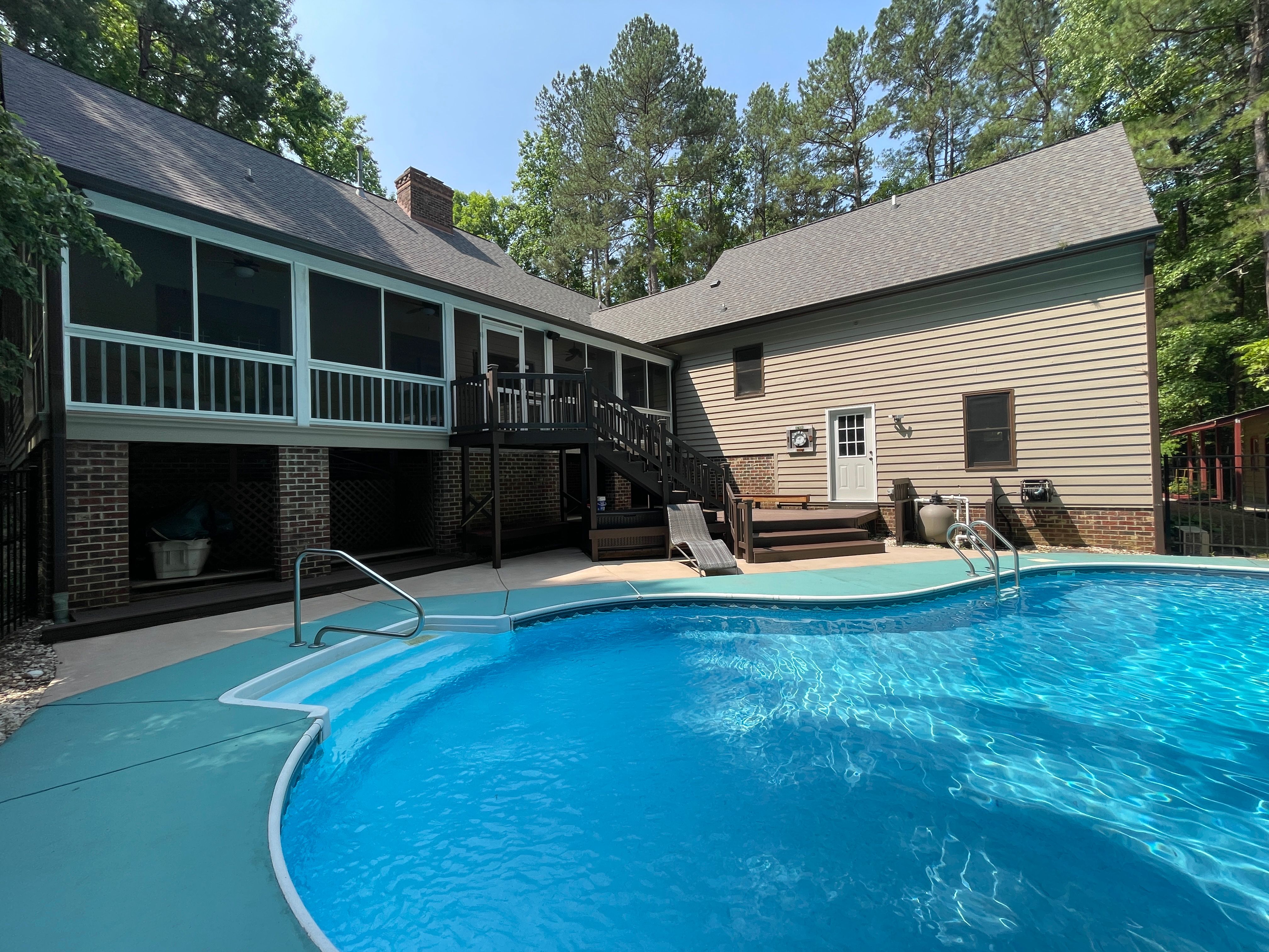 Hidden at the end of a meandering gravel road like something out of a storybook, 139 Trillium offers nearly 4 pristine acres of pure magic between Chapel Hill and Pittsboro. This isn't just another house listing—it's your chance to own a slice of heaven where modern luxury meets untouched natural beauty. Imagine waking up every morning to the sound of cardinals and woodpeckers instead of traffic, where your biggest decision is whether to enjoy your coffee on the full-length front porch or beside your topaz-blue pool. This stunning wood home proves you don't have to choose between privacy and convenience, offering the ultimate retreat that's still close to North Carolina's most charming towns.