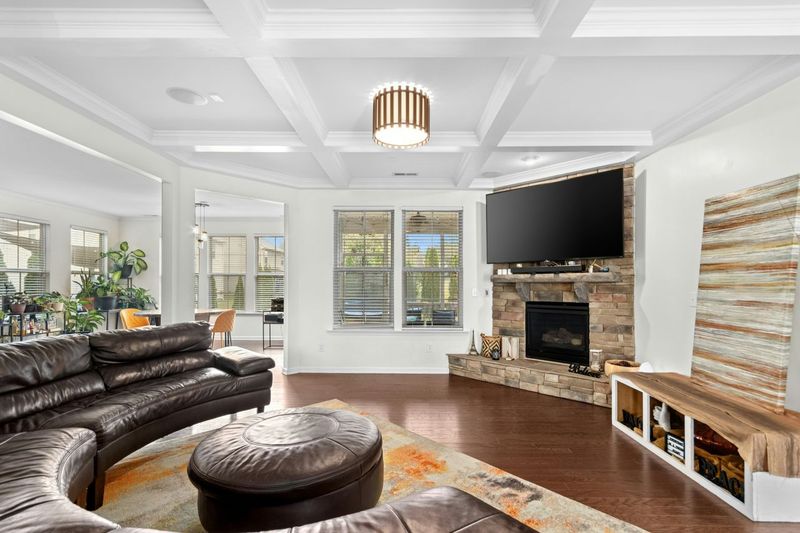 But here's where things get really interesting. Picture this: you've wrapped up a long day, and instead of retreating to just any family room, you're settling into a space with a coffered ceiling overhead and a cozy corner fireplace with stacked stone that practically begs you to light a fire and get lost in a good book. The main floor even offers flexibility most homes can only dream of—a bedroom and full bath that transforms based on your life's needs. Remote work headquarters? Guest suite for visiting family? Your personal sanctuary? You decide. Then venture upstairs to the owner's suite, where a sitting area gives you that hotel-luxury feeling every single day, complete with a spa-worthy bathroom and a walk-in closet that'll make organizing actually enjoyable (yes, really). Two more bedrooms provide space for kids, hobbies, or whatever your household requires, but the real MVP might just be that incredible bonus room—we're talking serious potential for a home theater, game room, or that creative studio you've always wanted.